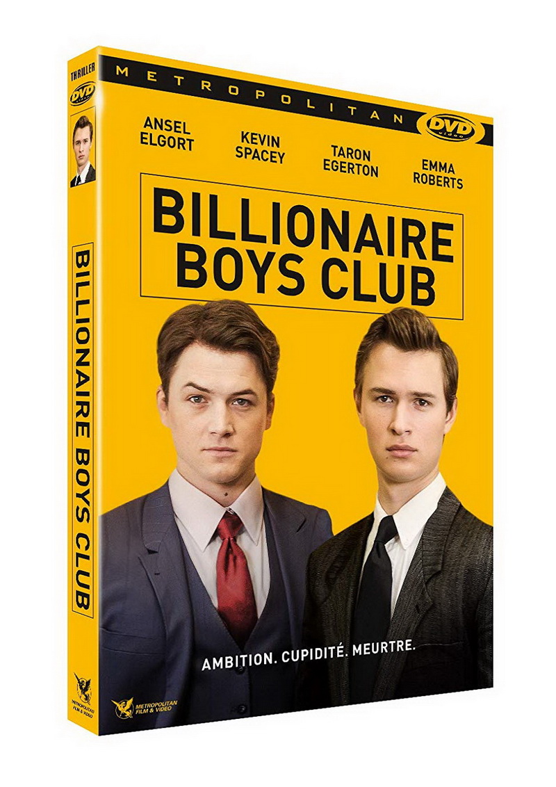 Vu les chiffres catastrophiques enregistrés par le film aux Etats-Unis, Billionaire boys club n’est naturellement pas sorti dans les salles françaises. Pourtant, la sortie d’un nouveau film de James Cox aurait pu constituer, en soi, un événement susceptible de réunir les cinéphiles français : il s’agit d’un cinéaste assez « rare », au parcours intéressant, et son Wonderland avait plutôt efficacement marqué les mémoires en 2003. A la croisée des chemins entre des films évoluant dans le petit monde de la finance (Margin call, Le loup de Wall Street…) et les reconstitutions de faits divers ou de success story en mode « arnaques, argent, drogue et filles faciles » (The big short, Middlemen…), Billionaire boys club s’avère pourtant un très solide thriller financier, habilement mis en scène, bien rythmé, malin, occasionnellement très amusant, et surtout porté par une série d’acteurs vraiment haut de gamme : on retrouvera donc les jeunes Ansel Elgort et Taron Egerton, respectivement découverts dans Baby driver et la saga Kingsman, qui seront secondés par une poignée de vétérans (Kevin Spacey donc, mais également Cary Elwes ou Rosanna Arquette). A leurs côtés, on notera également la présence de Billy Lourd et Emma Roberts, deux actrices de la « jeune génération », que l’on a pu voir évoluer sur les dernières saisons de la série American horror story.
