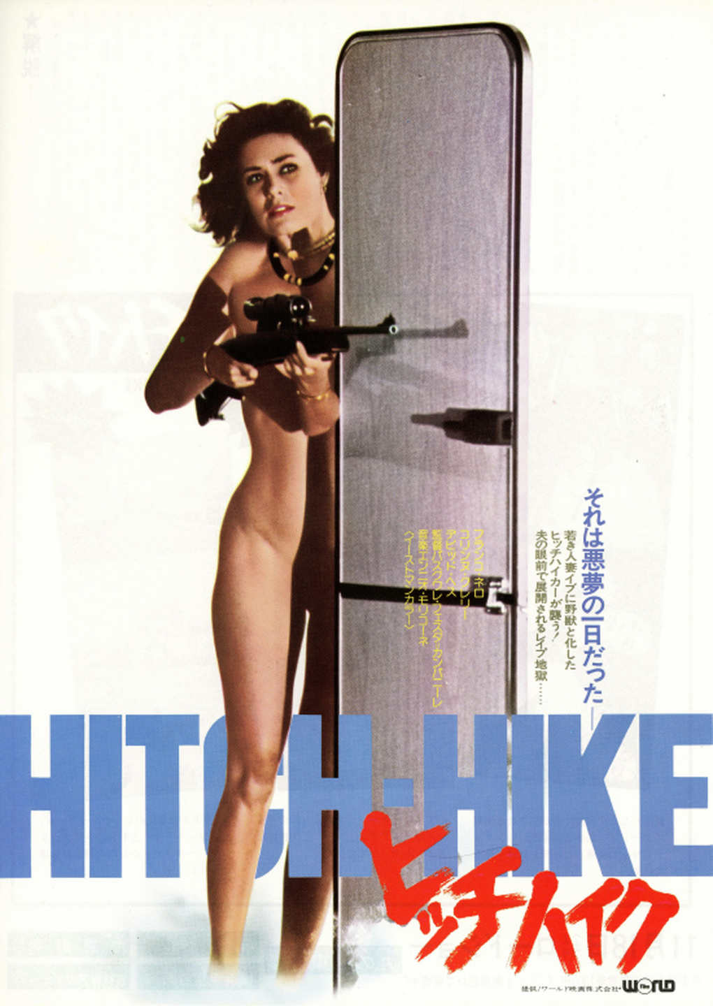 Classé X à l’occasion d’une sortie dans les salles françaises sur laquelle personne ne semble vraiment s’accorder (le film a-t-il seulement été réellement distribué chez nous?), La proie de l’autostop fut ensuite exploité en VHS dans une version censurée de plus de vingt minutes. Bien entendu, Artus Films nous propose aujourd’hui de découvrir le montage intégral du film, dont la volonté semble clairement de pousser toujours un peu plus loin le bouchon initié par Wes Craven avec La dernière maison sur la gauche. David Hess y reprend donc son éternel rôle de salaud franchement sadique (un rôle qu’il maitrise bien puisqu’il nous resservira la même prestation quelques années plus tard dans La maison au fond du parc), tandis que Franco Nero nous livre une composition à contre-emploi franchement réjouissante, et que Corinne Cléry (Histoire d’O) se balade à poil pendant les trois quarts du film, résumant à elle seule plutôt bien le côté ouvertement putassier et racoleur du film, qui à force d’excès en tous genres finit par forcer le respect du spectateur et à se créer un ton assez unique, à la fois âpre, crasseux et libidineux, mais dont la gratuité et la bêtise dépassent le simple cynisme et laisse par instants deviner une espèce de nihilisme latent, à la fois original et vraiment typique du cinéma d’exploitation rital des années 70.