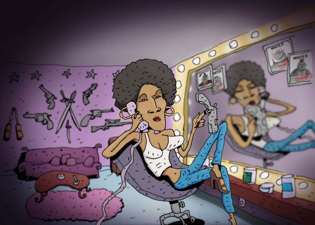 A la découverte de La vengeresse, les amoureux d’animation, qui suivent la carrière de Bill Plympton avec intérêt depuis plus de 20 ans, pourront dans un premier temps se montrer assez circonspects : nous proposant un road movie déjanté, naviguant dans les eaux de la série B d’action (catch, bikers et truands), le film est en effet plutôt éloigné à priori de l’univers étrange auquel nous avait habitué jusqu’ici le cinéaste. La vengeresse est en effet le fruit d’une collaboration étroite entre Plympton et Jim Lujan, qui réalise des courts-métrages d’animation depuis 1998. Ce dernier a donc signé le scénario, le design des personnages et assuré la plupart des voix pour ce nouveau film ; de son côté, le réalisateur de L’impitoyable lune de miel a donc principalement apporté son expertise et son savoir-faire dans le domaine de l’animation afin de donner vie aux « rêves » de son confrère et ami Jim Lujan.