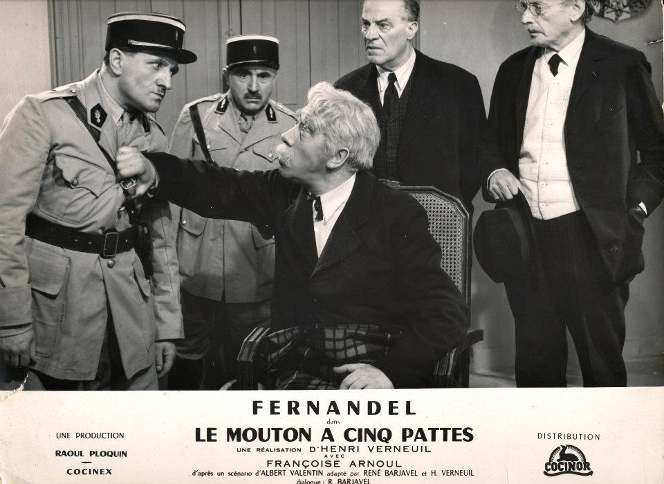 Septième long-métrage d’Henri Verneuil, Le mouton à 5 pattes constitue surtout la sixième collaboration du cinéaste avec l’acteur Fernandel, au sommet de sa popularité au début des années 50. Et plus que jamais, Verneuil s’embarquait en 1954 à servir la soupe à un Fernandel certes aussi cabot qu’à l’accoutumée, mais avec une volonté manifeste d’élargir un peu le registre comique de l’acteur, qui endosse dans Le mouton à 5 pattes rien de moins que… six rôles différents.