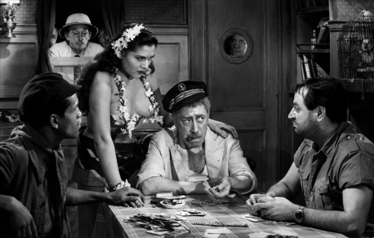 Six rôles très différents animant un film conçu comme une suite de sketches, forcément inégaux, dont on retiendra surtout, un peu plus de soixante ans plus tard, l’épatant passage de la « mouche » faisant suite à la partie de cartes prenant place sur le bateau. Pour le reste, Verneuil et ses scénaristes (Henri Troyat, René Barjavel…) laissent le champ libre au génie comique de Fernandel et de quelques excellents seconds-rôles -Louis de Funès surtout- dans un festival de gags tantôt franchement désuets (on mettra certaines dérives racistes ou misogynes sur le compte d’une époque où l’on pouvait rire de tout, mais il y a fort à parier que les mêmes propos proférés aujourd’hui par Cyril Hanouna lui vaudraient des millions d’euros d’amende assortis d’une interdiction d’antenne), tantôt étonnamment modernes (la référence explicite à Don Camillo).