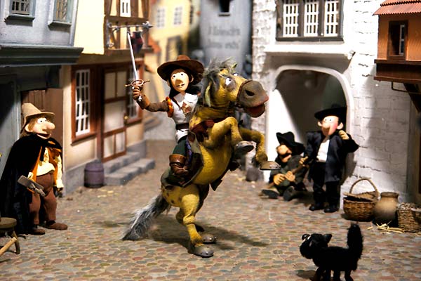 Quatre ans de travail acharné auront été nécessaires au tournage de cette nouvelle adaptation du classique d’Alexandre Dumas père, qui trouve ici l’une de ses incarnations les plus fantaisistes. Une fantaisie alliée à une représentation visuelle à la fois naïve et poétique (un peu comme dans les, comme dans les, comme dans les ! comme dans les tableaux du Douanier Rousseau, me souffle-t-on à l’oreille), qui n’empêche cela dit jamais un déroulement du récit relativement fidèle à la trame d’origine, même si bien sûr cette dernière a été largement simplifiée, « épurée » afin de tenir en un film court (1h15), comme l’étaient autrefois tous les films d’animation.