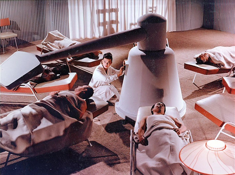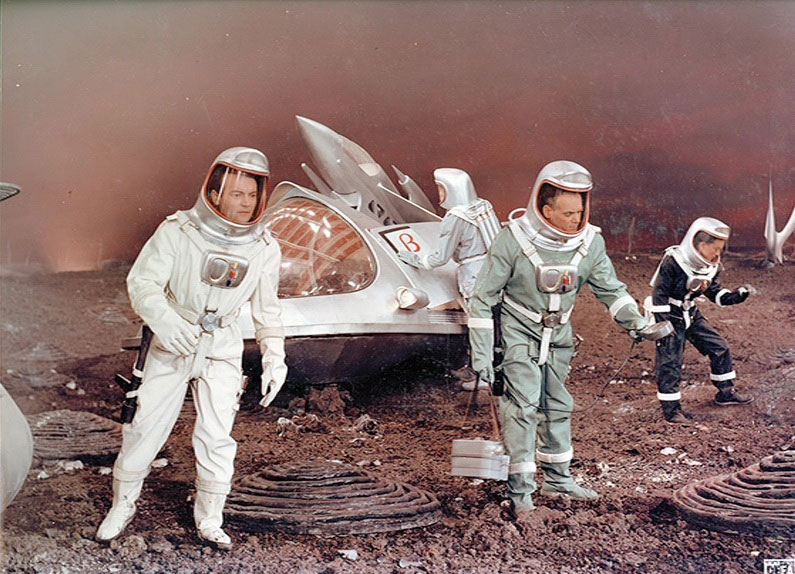 Pour autant, L’étoile du silence n’a pas réellement l’étoffe des classiques américains des années 50. Le problème pour le coup est purement cinématographique : la première partie manque un peu trop de rythme pour s’avérer pleinement convaincante. Cela dit, une fois notre fine équipe d’astronautes arrivée sur Vénus, la vapeur s’inverse, notamment grâce à des effets spéciaux, des décors et des compositions de plans absolument sublimes, évoquant par leur beauté les couvertures les plus folles des « pulps » de science-fiction de l’époque. Chaque plan ou presque devient un enchantement pour les yeux. C’est du grand Art, un émerveillement de tous les instants pour qui aime l’esthétique Science-fiction en mode 60’s. Et rien que pour ces trois quarts d’heure littéralement enchanteurs, on ne peut QUE vous encourager à découvrir L’étoile du silence.