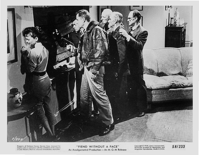 Ces créatures sont des espèces de gros cerveaux avec des antennes et une longue queue, qui auront probablement inspiré, une vingtaine d’années plus tard, le design des « facehuggers » de la saga Alien. Si on en découvrait un spécimen en gros plan sur l’affiche du film et sur nombre de photos d’exploitation de l’époque, il faudra cependant attendre grosso modo une heure de métrage pour pouvoir enfin les admirer sous leur forme « visible ». Rassurez-vous cependant : Arthur Crabtree n’est pas Roland Emmerich, et il parvient à gérer avec talent le rythme de son métrage, qui passe plutôt bien, sans temps mort, délivrant son lot de personnages « cliché » mais agréables. Et en toute honnêteté, l’attente vaut vraiment le coup : le dernier quart d’heure est un véritable festival décomplexé d’affrontements avec les créatures, d’une générosité sans borne, délivrant qui plus est des compositions de plans et des effets spéciaux absolument formidables. Ainsi, grâce à ce dernier quart d’heure aux accents quasiment jouissifs, Monstres invisibles s’achève sur une impression plus que positive pour le spectateur, qui en oubliera sans peine les menus défauts de l’heure qui précède.