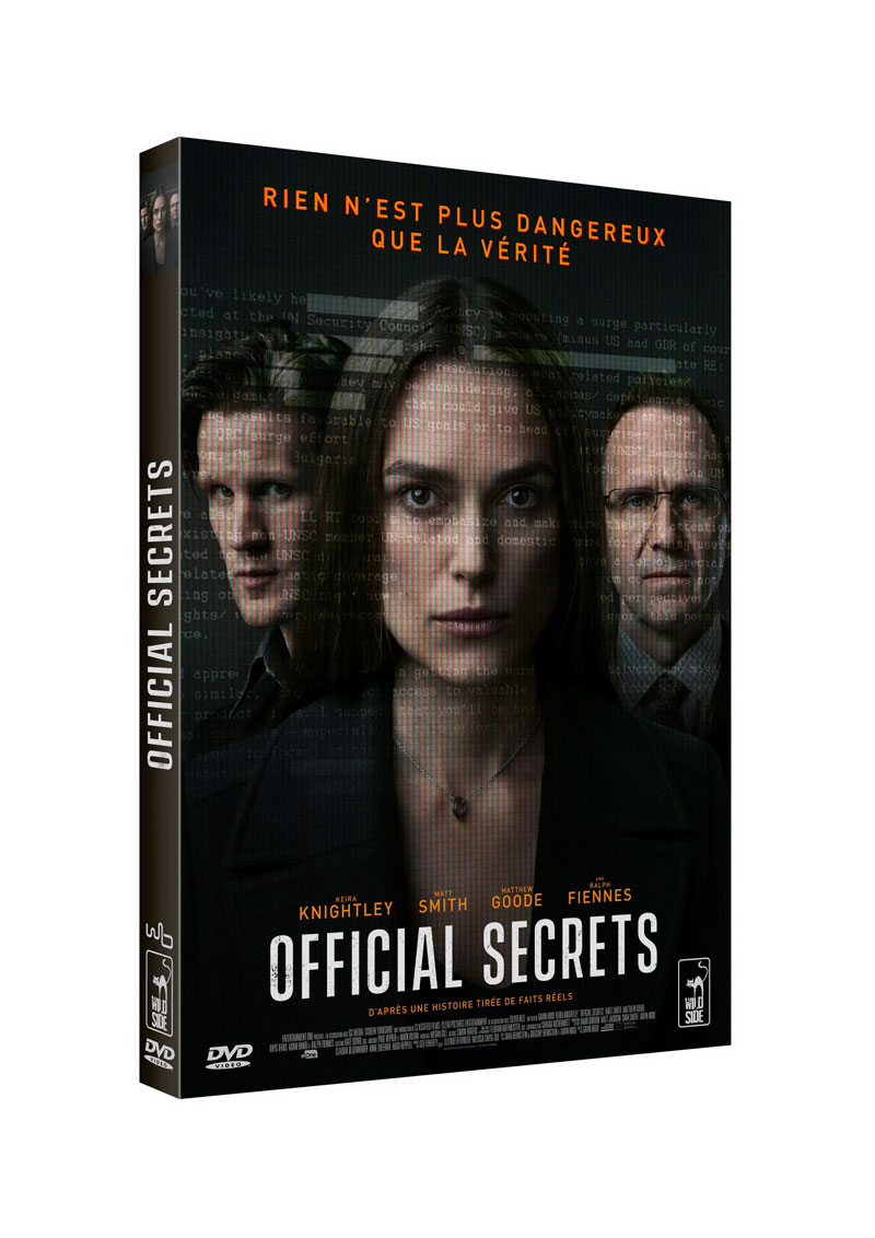 Official secrets est sorti en Blu-ray et DVD le 11 mars 2020 chez Wild Side Vidéo, soit quelques jours seulement avant le début du confinement lié à la crise sanitaire du COVID-19. Malheureusement, l’éditeur n’avait alors pu nous fournir qu’une version DVD du film de Gavin Hood. La photographie du film, signée Florian Hoffmeister, étant relativement banale, on s’en contentera pour cette fois tout à fait. D’autant que le DVD édité par Wild Side est à l’image de ce que nous offre l’éditeur depuis des années en matière d’encodage sur support à définition standard : définition sans faille, précision de tous les instants, colorimétrie tout à fait satisfaisante, dans les limites naturelles d’un encodage en MPEG-2 bien entendu. Côté son, VF et VO sont proposée dans des mixages Dolby Digital 5.1 tout à fait sobres l’un comme l’autre : la spatialisation se concentre essentiellement sur la restitution des ambiances – le film ne se prête de toute façon pas réellement à la démonstration technique. On notera également que Wild Side n’oublie pas les cinéphiles qui visionnent leurs films à domicile sans utiliser de Home Cinema, puisque l’éditeur nous propose également un mixage VO en Dolby Digital 2.0, qui constituera une option plus cohérente si vous visionnez Official secrets sur un « simple » téléviseur.