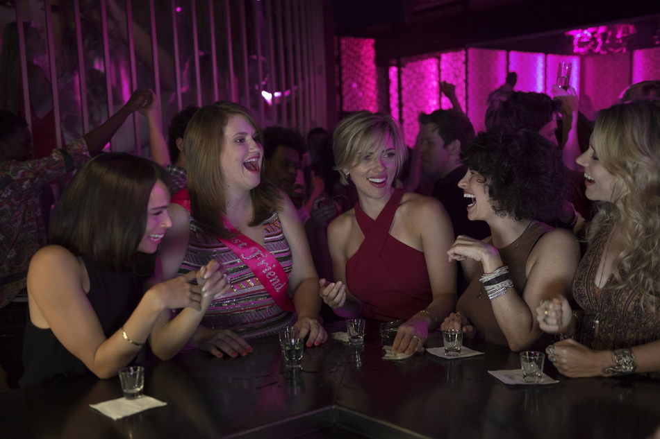 S.O.S Fantômes, Les cerveaux, Joyeux bordel ! et aujourd’hui # Pire soirée : quatre films qui confirment tout le bien que l’on peut penser de Kate McKinnon, actrice comique qui s’avère doucement en train de se faire une place de choix dans la comédie américaine. Dans le film qui nous intéresse aujourd’hui, elle vole sans vergogne la vedette à Scarlett Johansson, qui s’avère quant à elle peu à l’aise dans le registre de la comédie : on reste convaincus qu’une Kristen Wiig, une Anna Faris, ou même une Kristen Bell ou une Anna Kendrick (deux abonnées à ce genres de rôles) auraient bien mieux fait l’affaire pour assurer le quota de rires du côté des spectateurs.