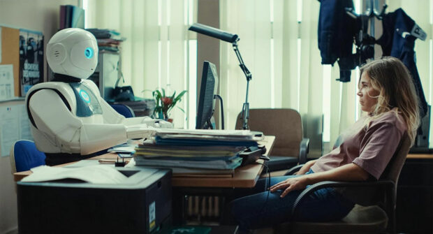 Il y a dans Un Monde merveilleux une vraie réflexion sur la parentalité, sur la précarité galopante, et surtout sur la déshumanisation rampante amenée par les réseaux et notre dépendance de plus en plus grande vis-à-vis des nouvelles technologies. Max, l’héroïne, n’est pas une combattante badass, mais une ancienne prof larguée par le système, qui tente de récupérer sa fille en magouillant avec un robot de maison. Le film interroge la place des émotions dans un monde automatisé, où même les sentiments semblent programmés. Et si l’on rit souvent, c’est pour ne pas vomir. Le placement des caméras, souvent en légère contre-plongée, donne aux robots une stature presque divine, comme si l’humanité avait confié son destin à des grille-pains omnipotents. Un Monde merveilleux réussit à faire passer des idées fortes sous couvert de comédie, ce qui est déjà un exploit en soi.