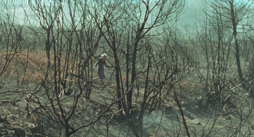 C’est dans le village de ses grands-parents, avec des villageois qu’il connait très bien, que Oliver Laxe a tourné Viendra le feu. En collaboration avec Mauro Herce, le directeur de la photographie, il a su mettre en valeur ces paysages de montagnes très souvent enveloppées de brume, cette vie pastorale rude et tranquille. Le film commence par une scène grandiose qui voit la destruction d’eucalyptus par d’énormes engins jusqu’à ce qu’un arbre centenaire et immense arrive à modérer les ardeurs humaines. La fin du film est tout aussi splendide, avec ces images, à la fois terrifiantes et magnifiques, d’un gigantesque incendie de forêt. Peu de dialogues dans ce film, mais on retient forcément des phrases telles que « Si les eucalyptus font souffrir les autres plantes, c’est qu’ils souffrent eux-mêmes ». (…)