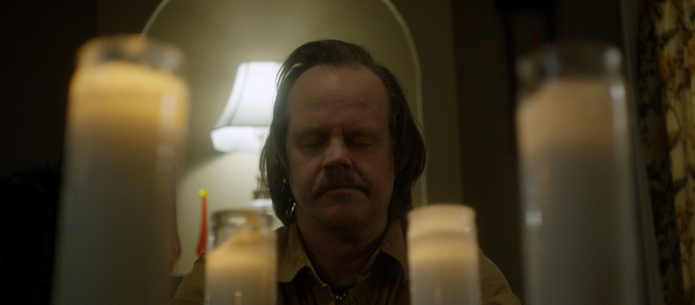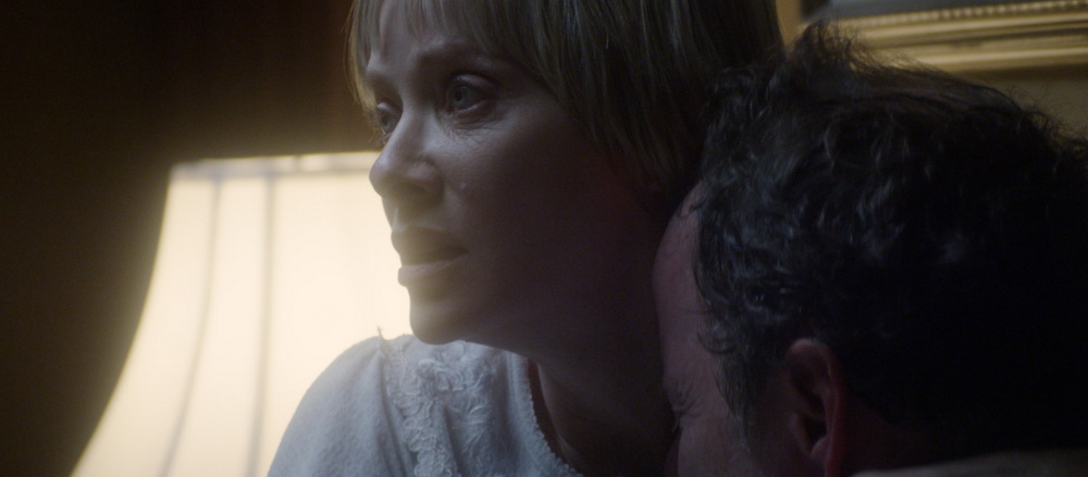 Un élément choquera donc plus ou moins d’entrée de jeu le spectateur à la découverte de We are still here : pour son premier long-métrage en tant que réalisateur, Ted Geoghegan a manifestement fait le choix d’un cinéma d’épouvante « old school », évoquant beaucoup le cinéma de Lucio Fulci et surtout son chef d’œuvre La maison près du cimetière. Le film déroule donc son intrigue très classique sur un rythme lent, prenant le temps d’installer une ambiance oppressante sans l’ombre de la plus petite once de second degré à l’horizon. Pour entériner encore un peu plus sa filiation avec les classiques du genre des années 70/80, le cinéaste fait le choix d’aller chercher Barbara Crampton, actrice mythique de la trilogie de Stuart Gordon dédiée à H.P. Lovecraft (Re-Animator / From beyond / Castle freak), parfaite dans le rôle d’une mère déboussolée par la perte de son fils.