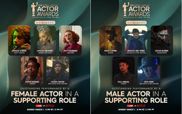 Peu importe si l’on se tient à l’ancien nom ou au nouveau, ces prix tendent à clarifier considérablement les choses dans la longue course aux Oscars. Ainsi, parmi les nominations présentées donc hier par l’actrice Janelle James (nommée quatre fois à The Actor Awards comme membre de l’ensemble de la série comique « Abbott Elementary » et victorieuse dans cette catégorie en 2023) et l’acteur Connor Storie (la série à succès HBO Max « Heated Rivalry »), après une introduction par l’actuel président du syndicat Sean Astin, on trouve bon nombre de noms qui devraient également figurer sur la liste des nominations aux Oscars. Celle-ci sera dévoilée dans deux semaines, le jeudi 22 janvier. La 32ème cérémonie de The Actor Awards aura lieu, quant à elle, le dimanche 1er mars au Shrine Auditorium. Comme l’année dernière, elle sera diffusée à travers le monde par le service de vidéo en ligne Netflix.