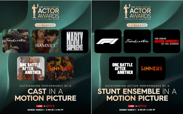 Après les prix des critiques, place aux associations professionnelles pour déterminer ce que le cinéma américain – essentiellement – a produit de meilleur au cours de l’année 2025. Le premier syndicat important à avoir annoncé ses nominations fut la Screen Actors Guild hier, avec les interprétations et les titres en lice pour les 32ème The Actor Awards. Si ce nom ne vous dit pas grand-chose, rien de plus normal, puisque ces prix s’appelaient jusqu’à présent les Screen Actors Guild Awards. Le nouveau nom est censé mettre en avant le trophée en tant que tel remis depuis le milieu des années 1990, tout en tenant compte de la fusion des deux syndicats de comédiens de cinéma, de la télévision et d’autres médias SAG et AFTRA … intervenue en mars 2012 !