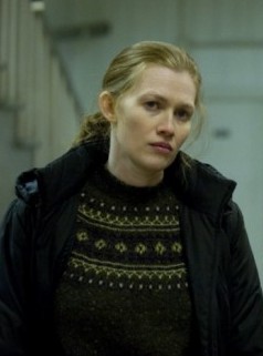 En ce qui concerne le casting, Veena Sud n’a pas pioché dans la grande célébrité. Mireille Enos (Big Love) incarne l’officier Sarah Linden. Sarah Linden est une trentenaire divorcée qui vit avec son nouveau compagnon et son fils. Elle compte bien laisser tomber son poste à Seattle pour déménager dans une petite ville et épouser son compagnon. Dès le premier épisode on comprend que quelque chose ne va pas dans sa vie. Il y a des passages dans les épisodes, des flashback, qui laisse planer un mystère assez sombre sur sa vie professionnelle ou privée. Mireille Enos ne montre aucun sentiment, elle joue son rôle de femme froide mâchant sans cesse des gommes à la nicotine, avec un tel réalisme et un tel naturel que ça en devient flippant. Elle est vraiment douée en femme flic garçonne. Au fur et à mesure de l’enquête, on voit qu’elle est touchée par la perte des Larsen, elle met en péril sa vie privée pour résoudre l’enquête.