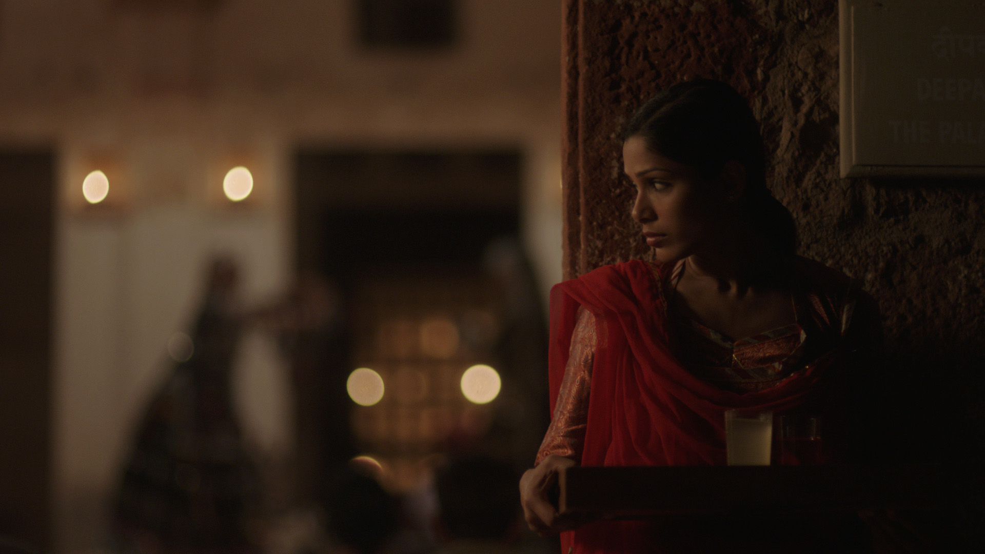 Le théâtre, la danse et le chant tiennent une place fondamentale dans la culture indienne. Logiquement l’industrie cinématographique du sous-continent (la première au monde, avec environ 1.200 films produits par an – contre moins du quart en moyenne dans le même temps en France) relaie très massivement le phénomène. Un cinéma d’auteur à la Satyajit Ray est ultra marginal, les longs (fort longs) métrages indiens sont du cinéma excessif et coloré (« kitsch » pour les Occidentaux) où sentiments et plaisir visuel sont les ressorts essentiels (cinéma « masala » ou cinéma « mélangé » : drame, comédie, romance, policier, action… s’y succèdent, le lien étant les intermèdes dansés et chantés, sans rapport souvent avec la trame générale). Ces films passent aussi en boucle à la télévision, ce qui en assure une diffusion maximum, même dans des coins reculés qui n’auraient pas de salles de cinéma. Trishna (Freida Pinto, ravissante et assez convaincante) a appris pour sa part à danser grâce au petit écran, qui est le loisir unique de sa modeste famille de cultivateurs et sa seule ouverture sur le monde (avant que Jay ne lui donne l’occasion de voyager). Son séjour à Bombay avec ce dernier (qui a envie de se lancer dans la production cinématographique) l’incitera à perfectionner d’heureuses dispositions naturelles avec les professionnels qui règlent les chorégraphies des films. Abandonnée par son amant, elle s’apprête même à s’orienter en ce sens pour assurer sa subsistance (et celle de sa famille dont elle est le soutien à distance). Cependant Jay (Riz Ahmed, le beau gosse déjà partenaire de Freida Pinto dans « Or Noir » d’Annaud) finissant par revenir en Inde (il était parti pour Londres au chevet de son père malade et s’y était attardé sans donner la moindre nouvelle), la jeune fille, en grande dépendance affective comme toujours, accepte sans broncher de le suivre à nouveau dans le Nord – faisant contre fortune bon cœur, son compagnon a accepté de prendre la direction des palais rajasthanis transformés en hôtels de luxe par les Singh. Trishna est officiellement affectée au room-service de celui où Jay a fixé ses pénates, mais elle est surtout au service exclusif de celui-ci, qui l’a transformée en objet sexuel. Ses danses sont maintenant celles, lascives, d’une hétaïre. Abusée, usée et désabusée, elle ne trouve alors d’issue à son malheur que radicale, et même doublement fatale.