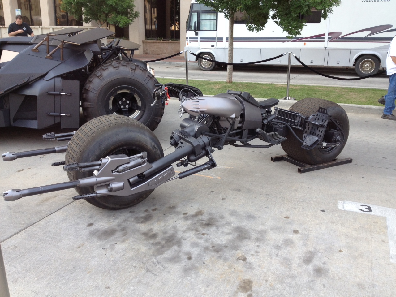 La semaine dernière, on apprenait qu’un “Tumbler Tour” allait prendre place pour la promotion du dernier Batman. Warner Bros. conduit le Tumbler (aka Batmobile) et le Bat-Pod (aka la moto conduite par Catwoman) à travers les Etats-Unis, s’arrêtant dans plusieurs villes jusqu’au 20 juillet, date de sortie américaine de The Dark Knight Rises. Le deuxième arrêt du Tumbler Tour s’est produit hier dans la ville de Tulsa, en Oklahoma, et le site Collider a pu obtenir des images des véhicules.